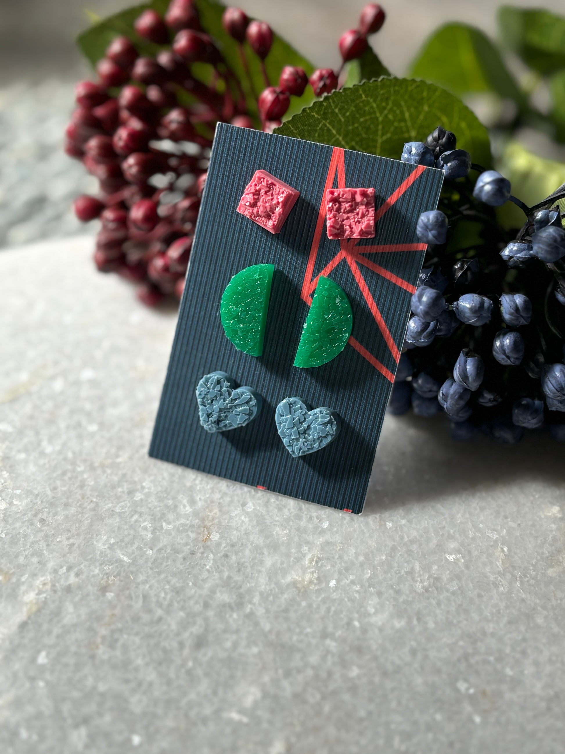 Expertly handcrafted with resin, this Stud Combo 1 adds a unique touch to any outfit. Made with quality materials, these studs are both durable and stylish. Enhance your look with the expert craftsmanship of these resin studs.