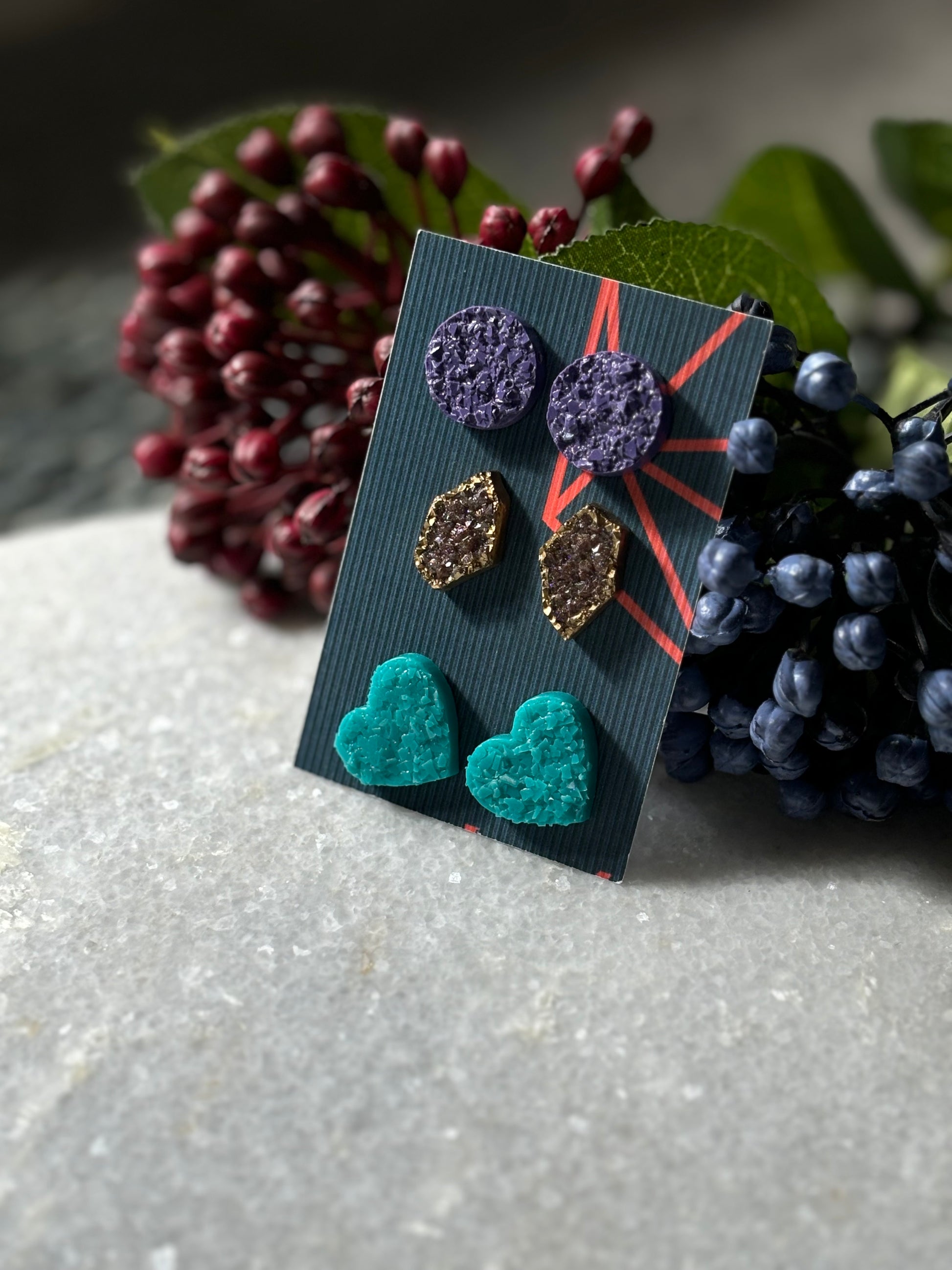 Expertly handcrafted with resin, this Stud Combo 1 adds a unique touch to any outfit. Made with quality materials, these studs are both durable and stylish. Enhance your look with the expert craftsmanship of these resin studs.