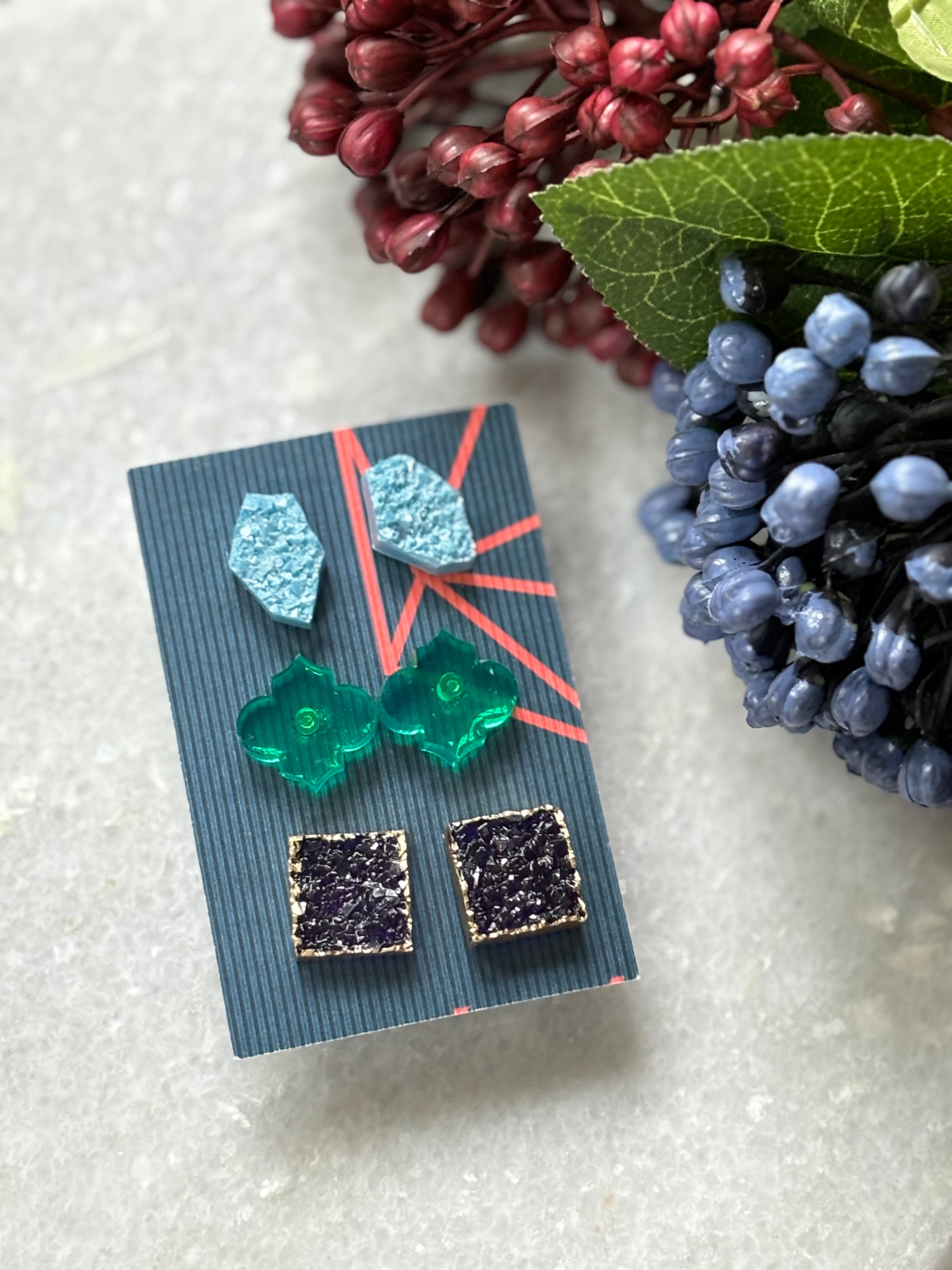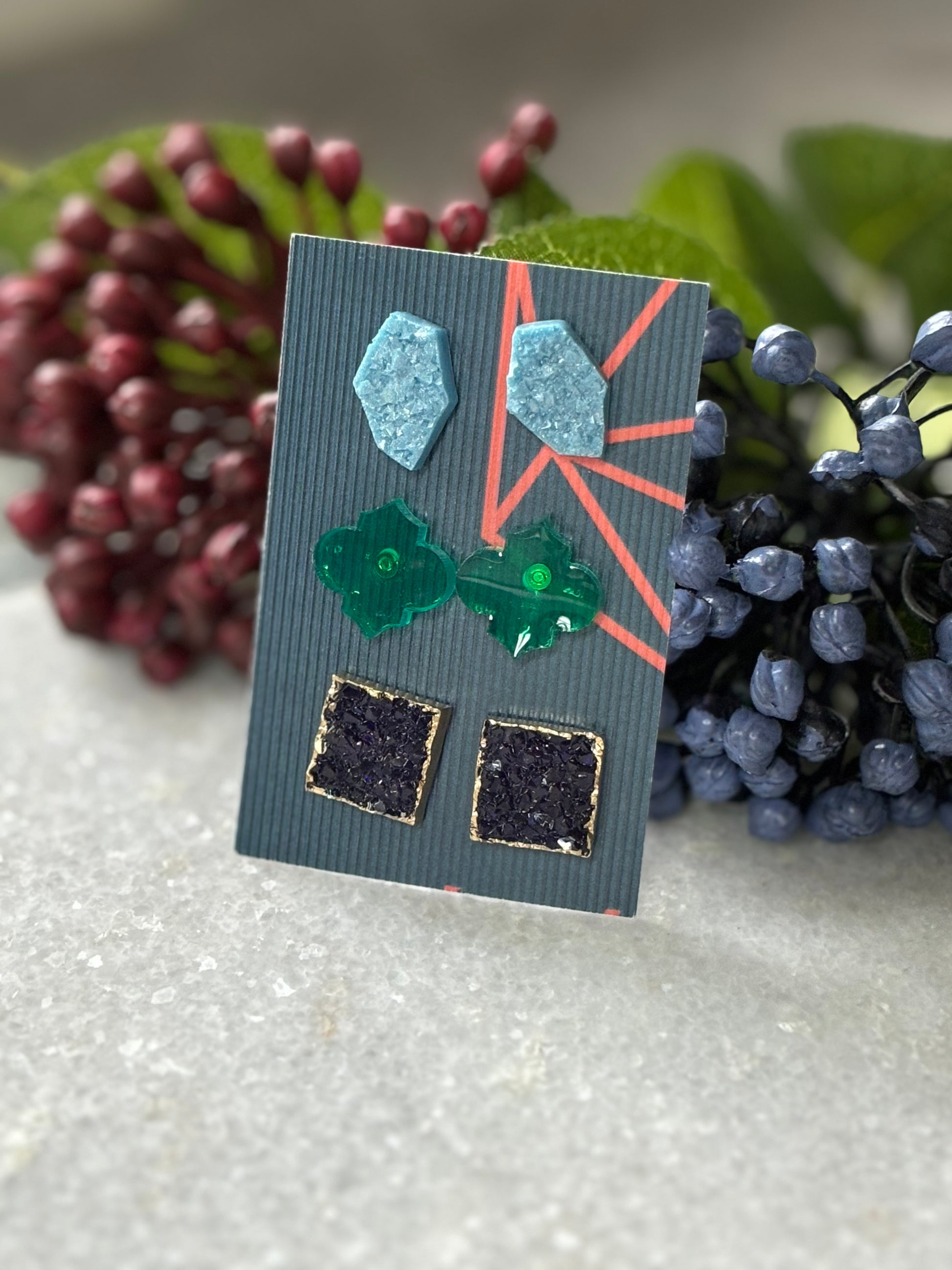 Expertly handcrafted with resin, this Stud Combo 1 adds a unique touch to any outfit. Made with quality materials, these studs are both durable and stylish. Enhance your look with the expert craftsmanship of these resin studs.